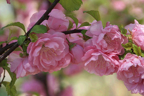 桃花乃薔薇科。落葉亞喬木,高3尺。葉披針形,互生,有鋸齒;春日開紅、白色花。果實為核果,外披細毛,味甘酸,可食。