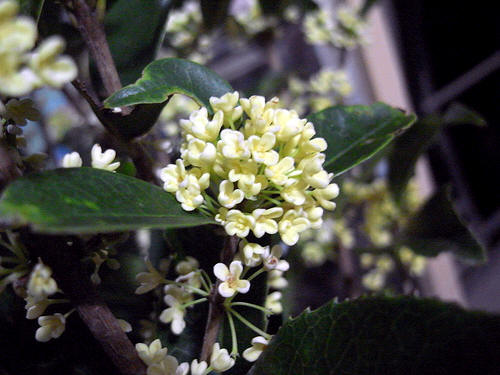 桂花,屬木犀科,常綠灌木或小喬木高3 -15米 ,枝灰色。葉對生,革質,長橢圓形,全 綠。花簇生於葉腋,花淡黃白色,4裂。核果橢圓形,熟時紫黑色。花芳香,提取芳香油,制桂花浸膏,可用於食品、化妝品的生產。花入藥有散寒破結、化痰生津的功效。果榨油,食用。亦是觀賞植物。